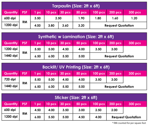 We are offer the state of the art technology to produce best quality inkjet printing to satisfiy your outdoor advertising requirement such as Giant Banner, Banner Adv or Street Bunting.